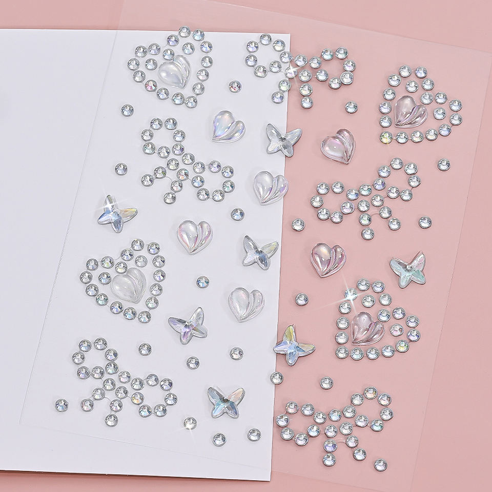 5Pc Diamant Visage Autocollants Blanc Style Mixte Glitter Cristal Visage Decal 3D Auto-Adhésif Visage Strass Maquillage
