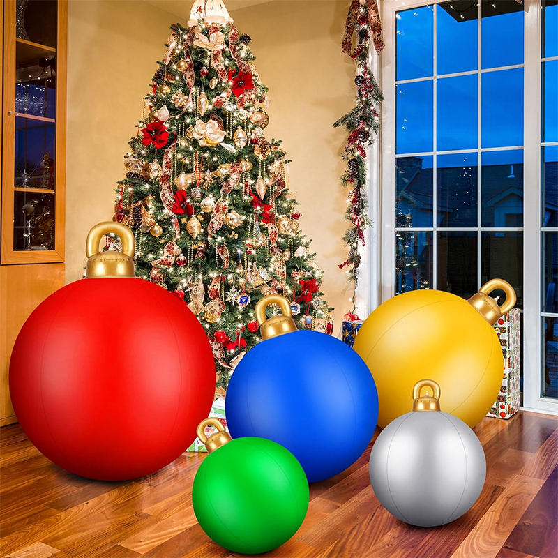 5 pièces Boules de Noël gonflables géantes en PVC de 18 pouces, 24 pouces, 30 pouces Décorations de Noël d'extérieur Ornements gonflables Boule de Noël