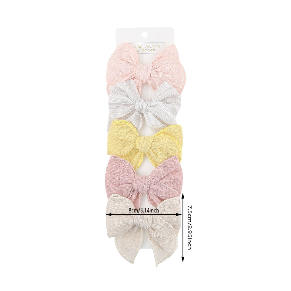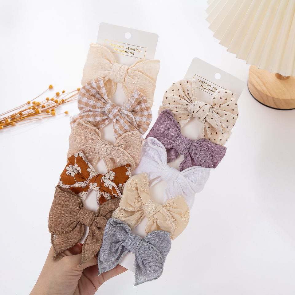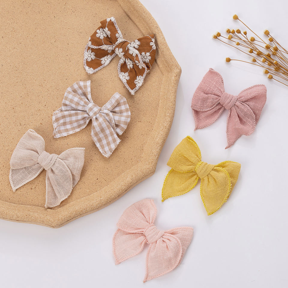 5 pièces fille nouveau-né doux Mini Fable arcs Clips imprime broderie coton lin mousseline bébé cheveux accessoires ensemble