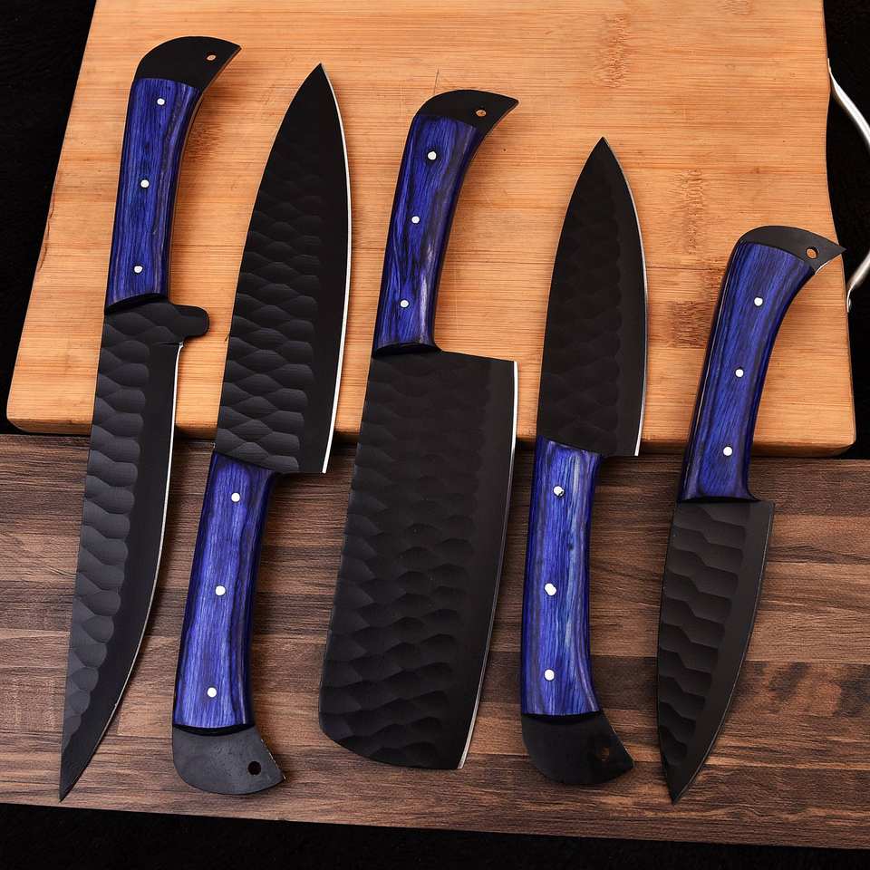 Lot de 5 couteaux de chef en acier damas forgés à la main Ensemble de couteaux de chef damas Ensemble de couteaux de cuisine Damas Cadeaux de Noël.