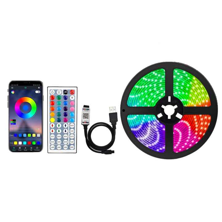 Bande lumineuse LED 5V 5050 RGB 12/30/60 LED/m avec télécommande sans fil 44 touches pour la décoration de paysages, résidences et chambres
