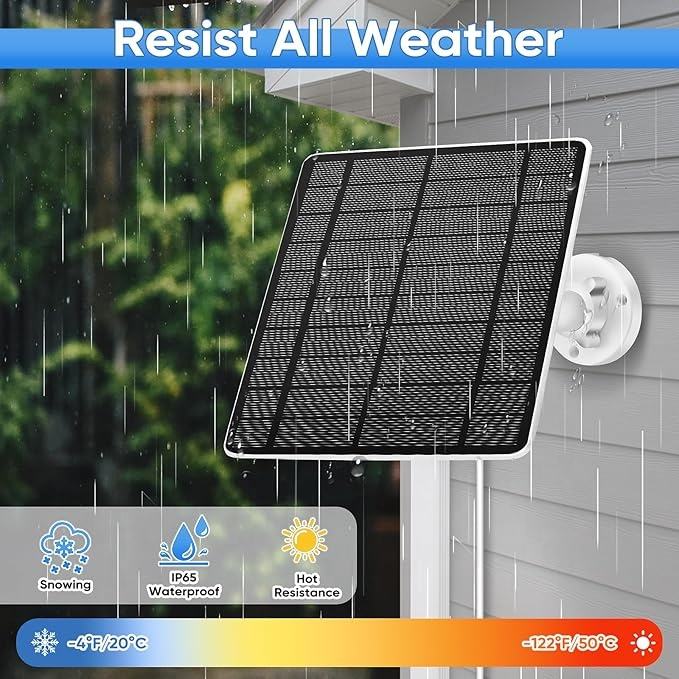 Panneaux solaires 5W pour caméra de sécurité, panneau solaire avec port micro USB et USB-C pour caméra de batterie rechargeable extérieure 5V CC