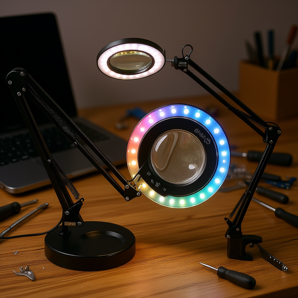 Loupe avec lampe 64 LED, lentille en verre de 4,3 pouces, base à pince, loupe de bureau 2 en 1 pour travaux de près