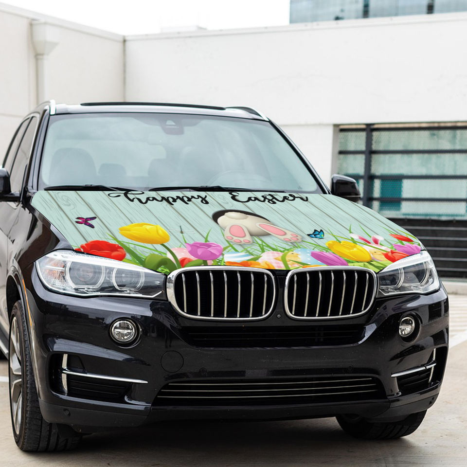 Housse de capot de voiture personnalisée 5x4 pieds, motif Lapin de Pâques, idéale pour les festivals et les événements sportifs, convient à la plupart des voitures et SUV, le cadeau parfait pour la protection du capot.