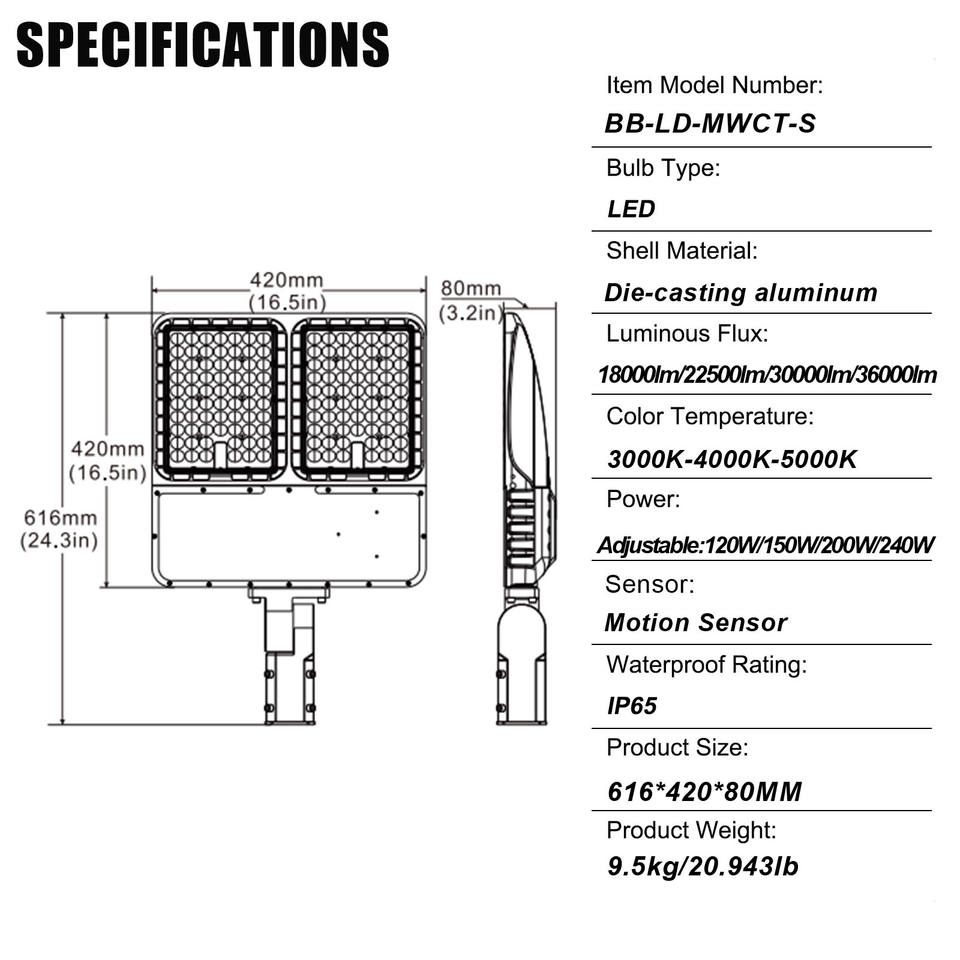 Lumière LED pour boîte à chaussures avec garantie de 5 ans, 100W 150W 200W 240W 300W 140LM/W, éclairage LED extérieur pour parking, éclairage de rue
