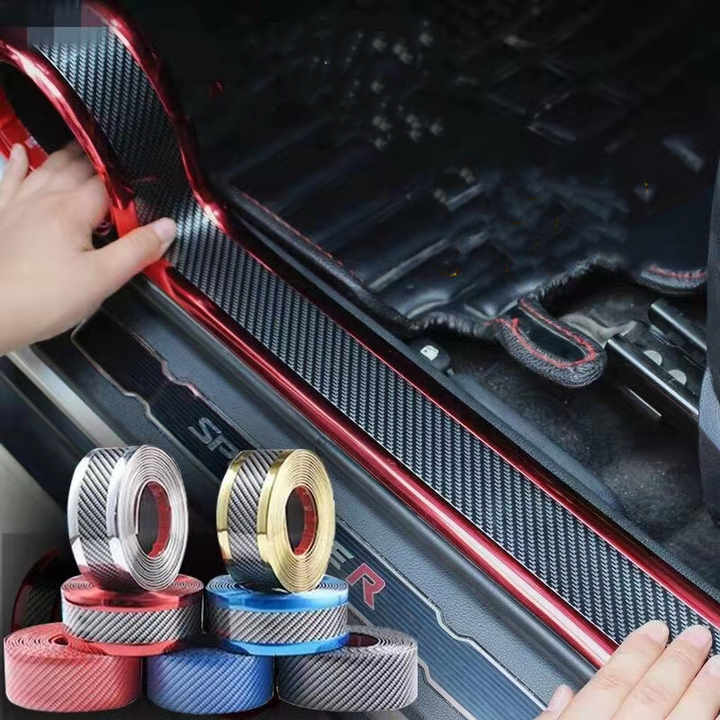 5d fibre de carbone voiture anti-rayures protecteur bande autocollant étanche corps pare-chocs coffre porte seuils autocollants étape seuil Protection