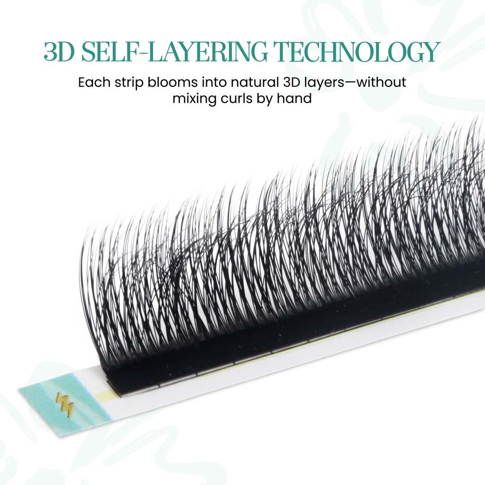 Cils individuels 5D multicouches camélia .07, technologie 3D auto-empilante, couleur ventilateur automatique, racines collées stables, vente en gros