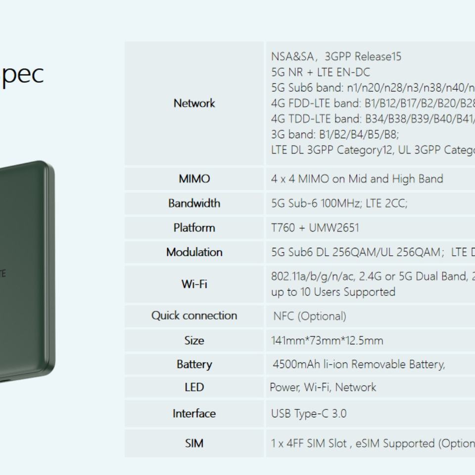 Nom du produit:Le Wi-Fi portable ZTE U30 Air 5G prend en charge NFC
