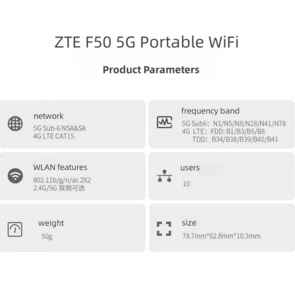 Nom du produit:ZTE F50 5G Wi-Fi portable