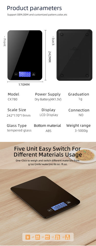 Balance de cuisine numérique de haute précision OEM unique de 5kg Balance alimentaire électronique intelligente LCD pour mesurer les calories alimentée par batterie 10kg