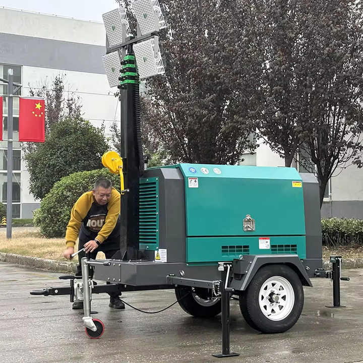 Tour d'éclairage mobile à générateur diesel AC 5m 7m 9m avec élévateur manuel, éclairage LED IP67, angle de faisceau de 360°
