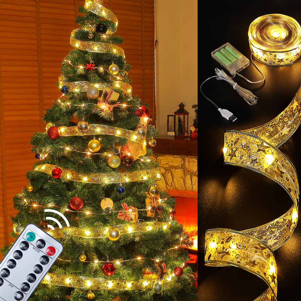 Ruban de Noël de 5 m avec lumières LED, ruban lumineux féerique, décoration de Noël, lumières LED de Noël pour arbre avec Ked