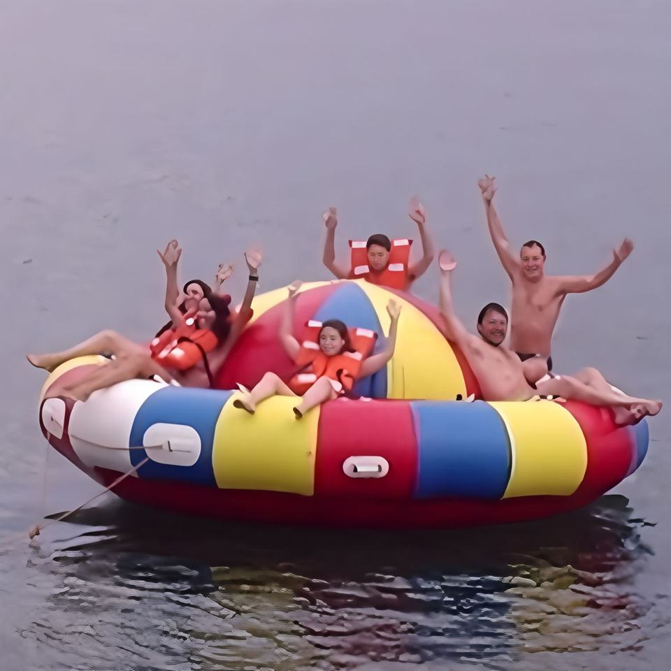 Bateau disco aquatique rotatif gonflable de 5 m de diamètre pour 15 personnes, bateau gonflable flottant remorquable UFO à vendre