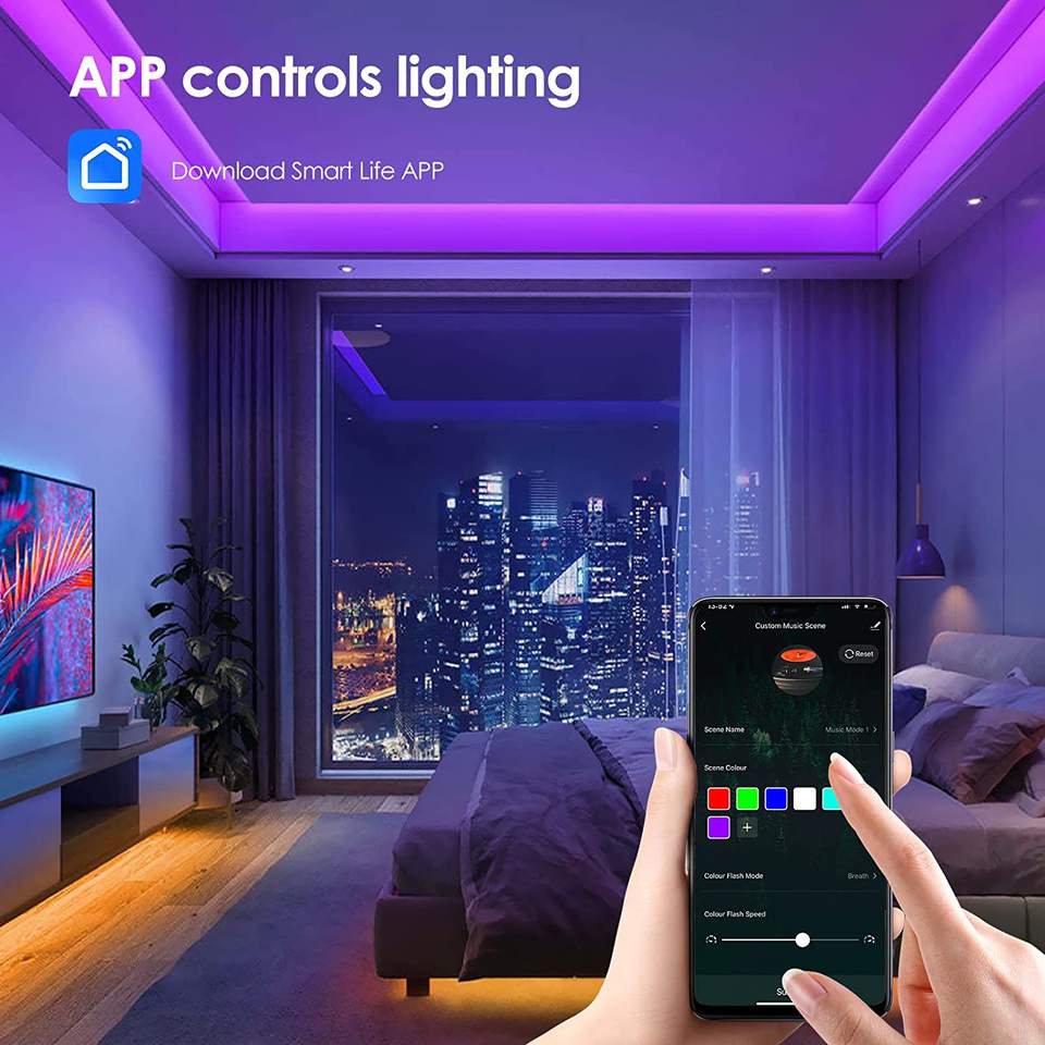 Ruban LED 5050 RGB 12 V (5 m–20 m) Kit Wi‑Fi Tuya/IR, compatible Alexa/Google, 16M couleurs, sync musique, adapt. EU/US/UK/AU