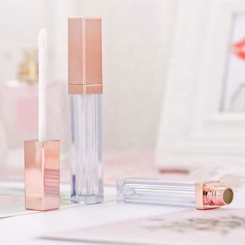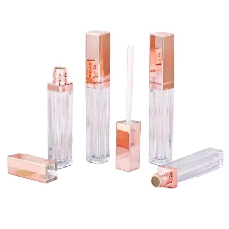 Contenant vide carré rose de 5 ml pour brillant à lèvres, flacon à lèvres rose doré avec applicateur