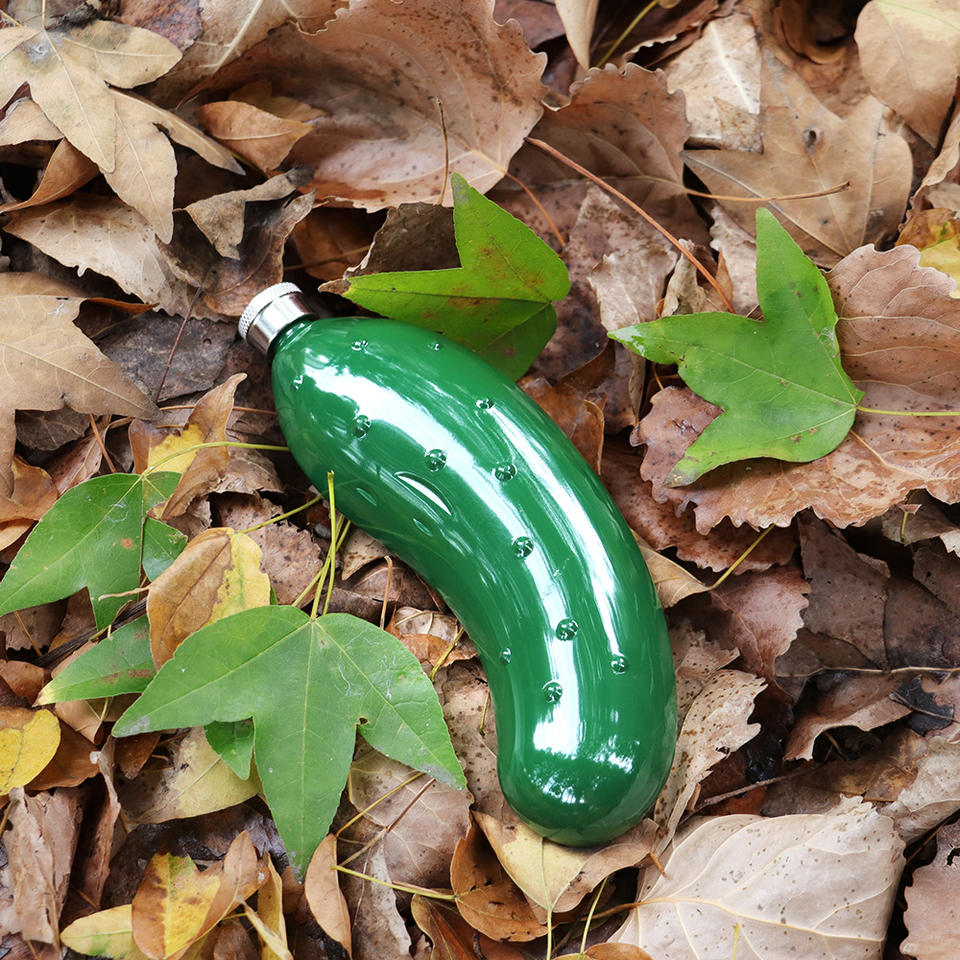 Flacon de hanche en acier inoxydable de 5oz avec entonnoir forme de concombre vert drôle mignon flacon de pot de vin bouteille d'alcool whisky poche flacon de hanche