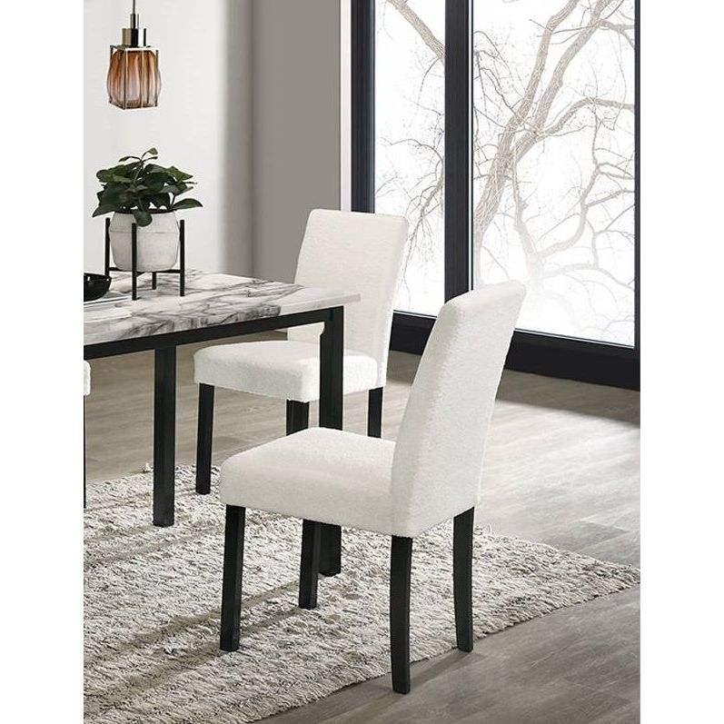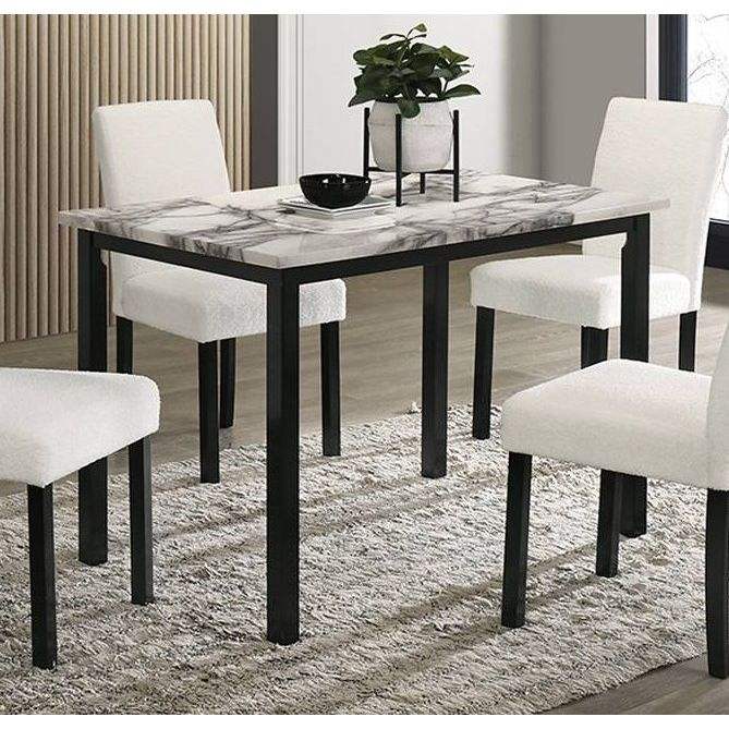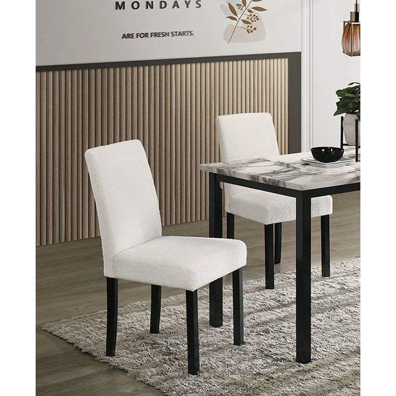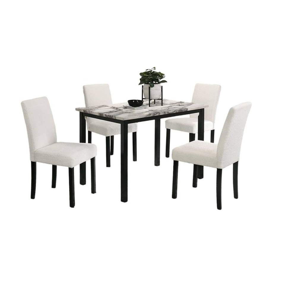 Ensemble de salle à manger 5 pièces en tissu de laine blanche, table avec plateau en faux marbre, 4 chaises rembourrées, housses de chaise, coussins pour salle à manger