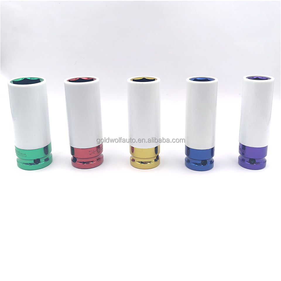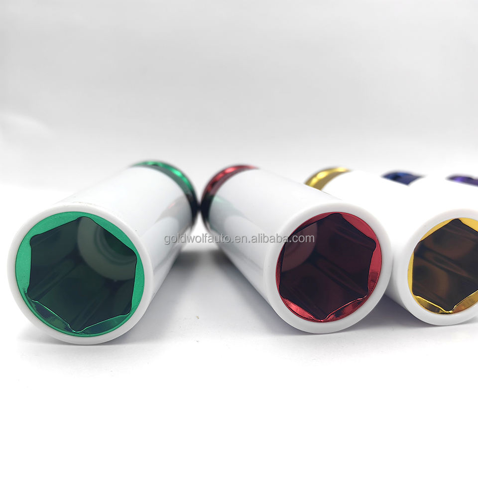Kit d'outils complet de 5 douilles hexagonales chromées en acier au carbone de 1/2 pouce pour réparation automobile, surface colorée, matériau CR-V