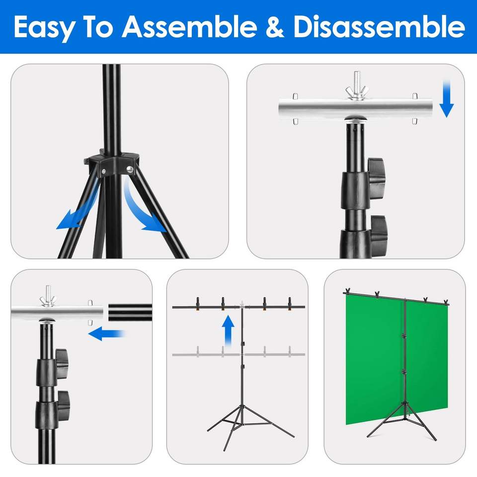 Lot de 5 supports de fond photo/vidéo en T robustes de 2 m (6,5 pi) avec 6 ressorts, accessoires de studio photo réglables