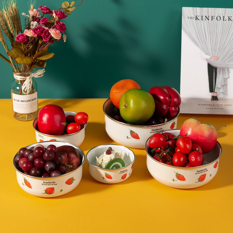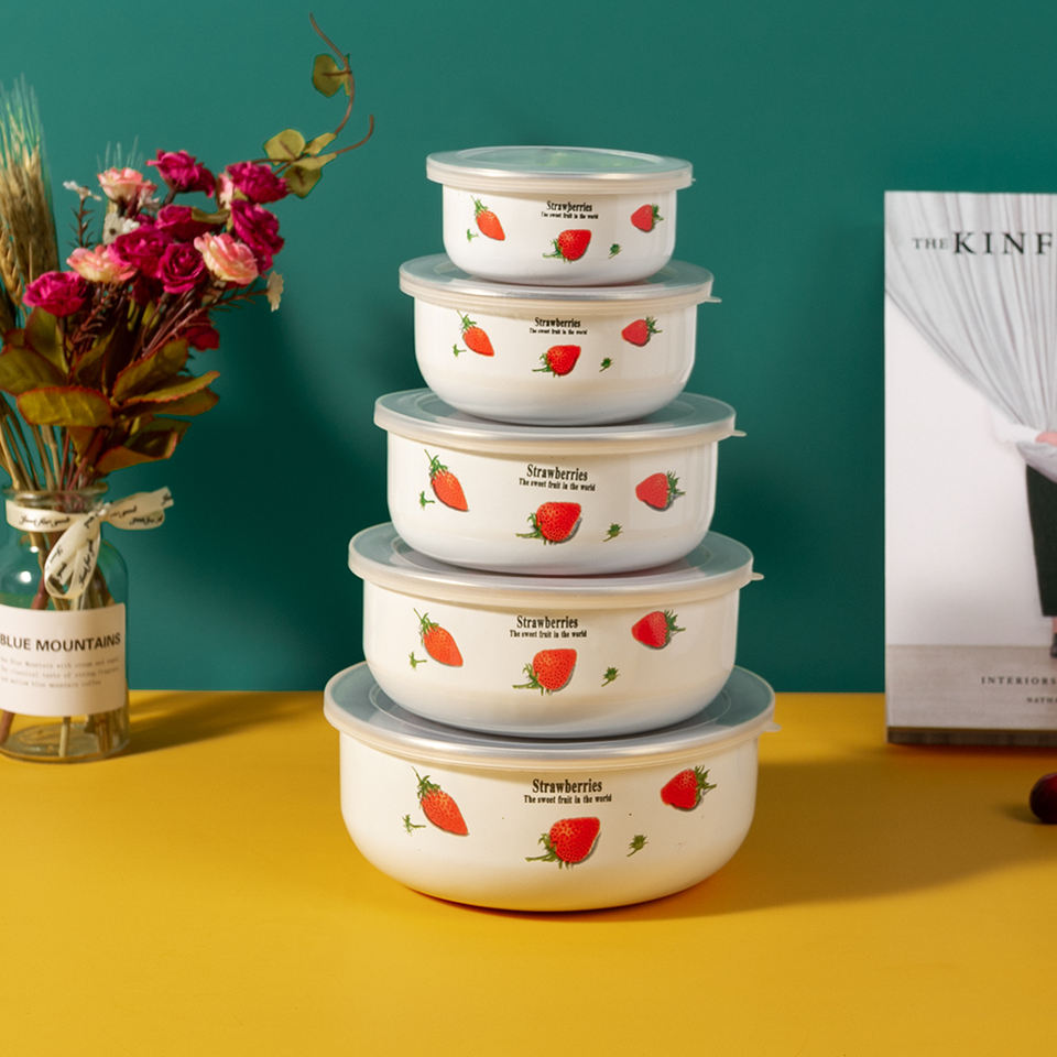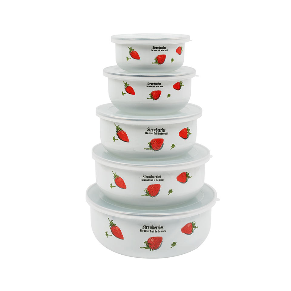 Meilleures ventes 5pcs d'usine directe émaillée batterie de cuisine promotion bon marché stockage et bol à glace avec couvercle en PP