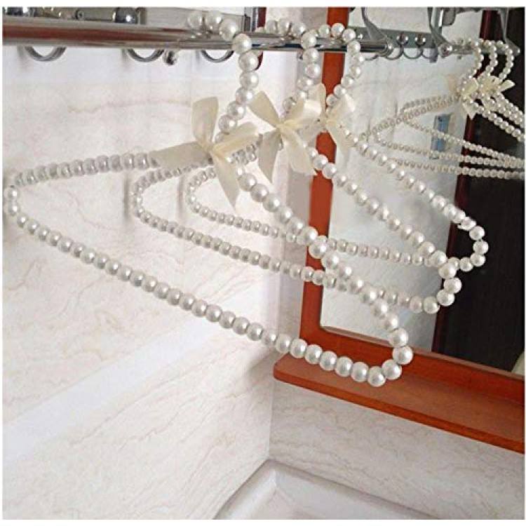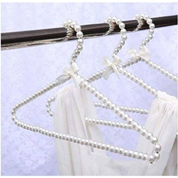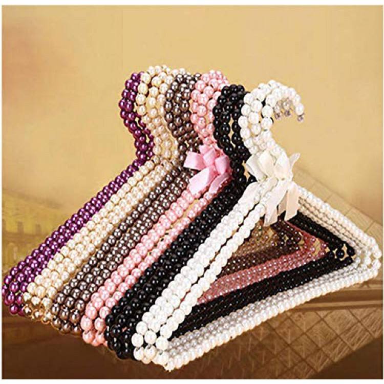 5pcs Random Color Clothes Hanger, Plastic Pearl Beaded Clothes Dress Coat Hangers