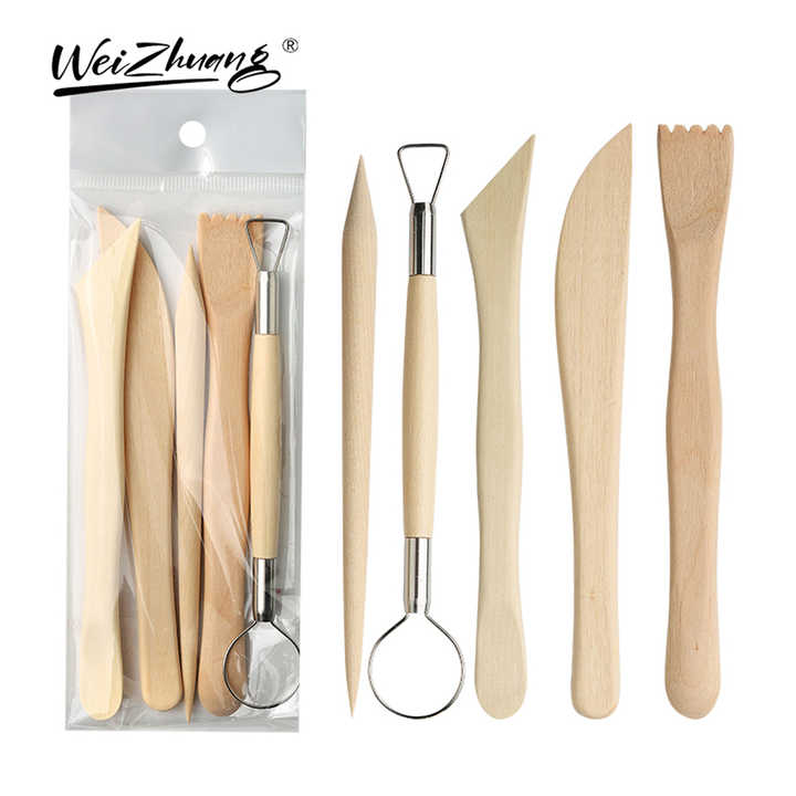 5 pièces trousse à outils de poterie en bois accessoires de sculpture en argile polymère pour poterie en céramique ensemble de modélisation en bois de fournitures d'art
