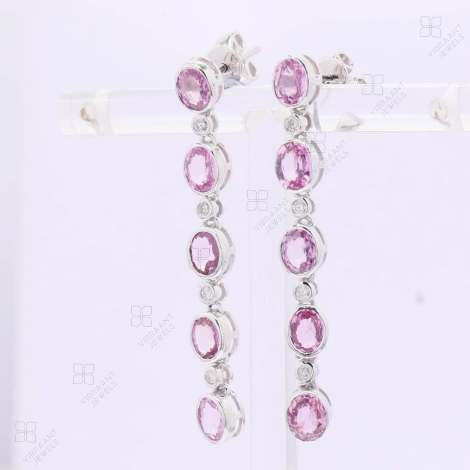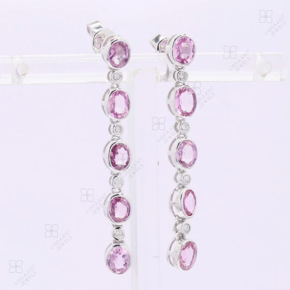 5x4mm Top qualité naturel rose saphir longues boucles d'oreilles fines pendantes 14k blanc rose pierres précieuses boucles d'oreilles fabricant indien