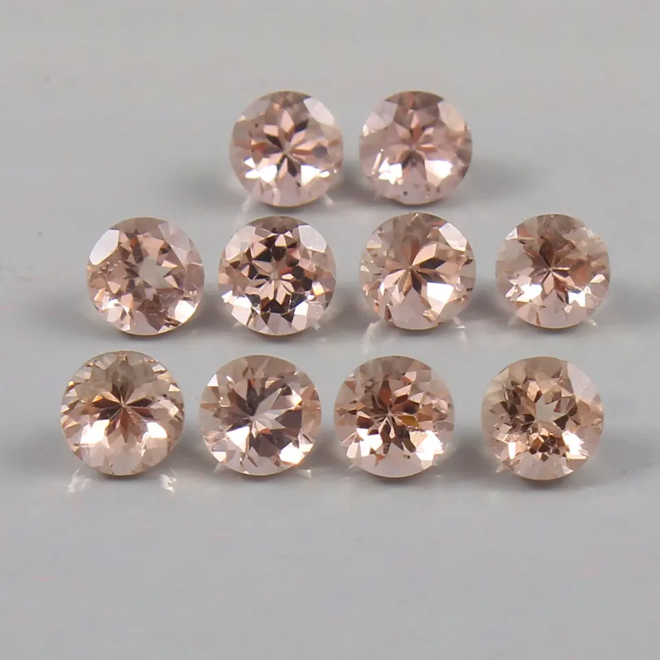 5x5MM Morganite Naturelle Forme Ronde Facettes Morganite Couleur Pêche Pierre Précieuse Lâche 6 Carat Lot de 10 Pièces