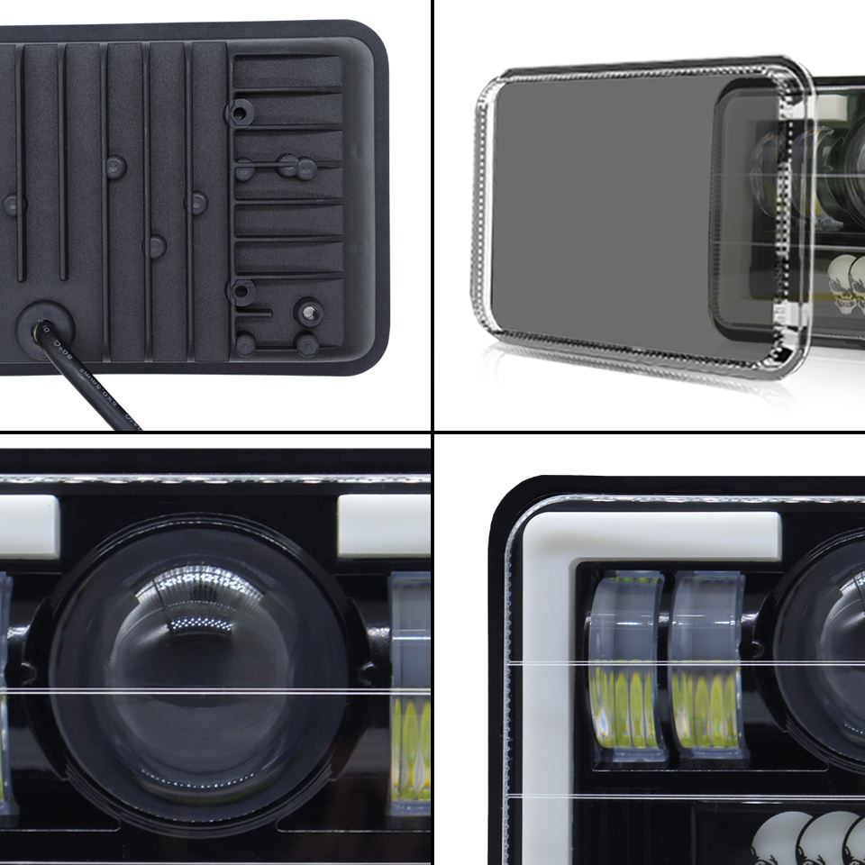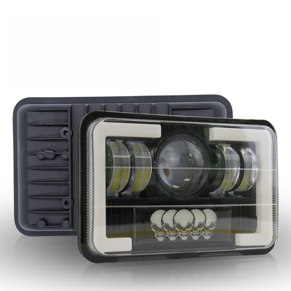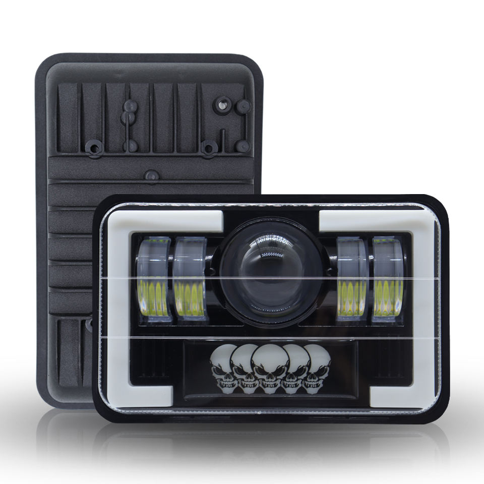 Phares LED carrés 5x7 5,75 pouces, clignotants crâne, feux de travail, 12V 45W, ampoule H4 6000K, ajustement universel pour