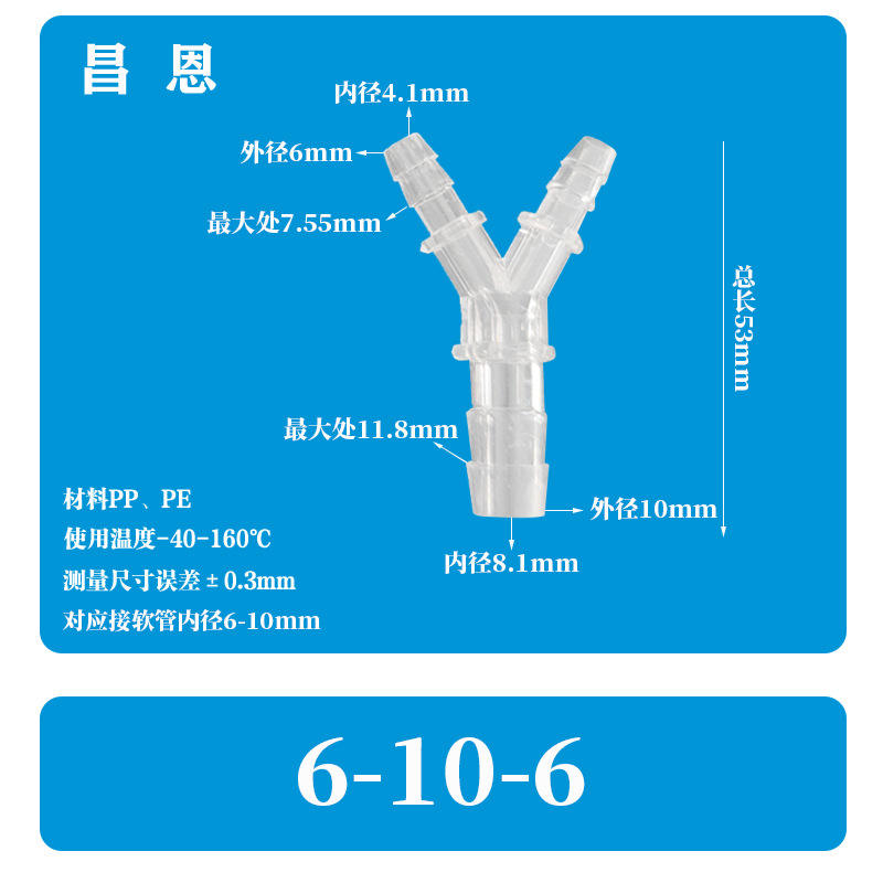 Raccord en T réducteur de type Y 6-10-6, connecteur pagode, distributeur d'eau en plastique avec tuyau en caoutchouc pour jardin, matériau PP
