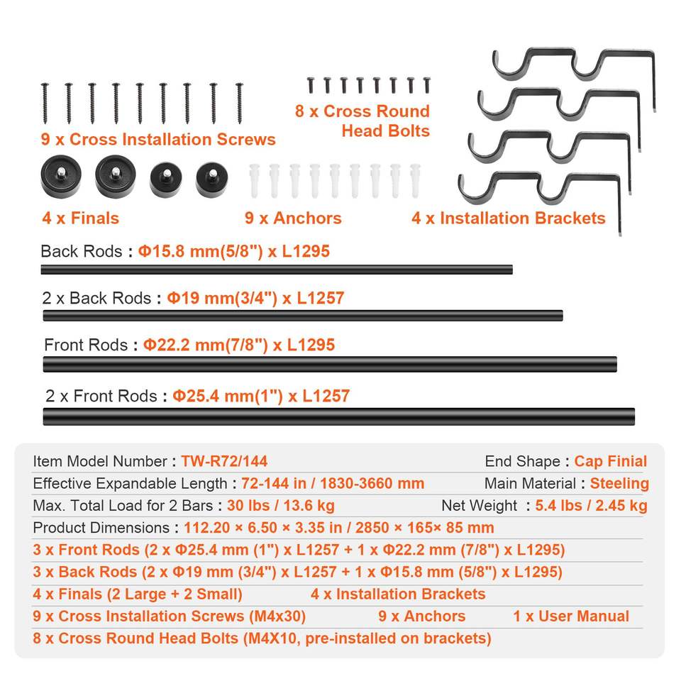 Tringle à rideaux télescopique double de 6 à 12 pieds, tringle à rideaux double de 1 pouce pour fenêtres, longueur personnalisable de 74 à 144 pouces pour fenêtre