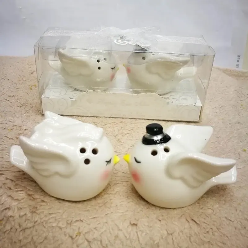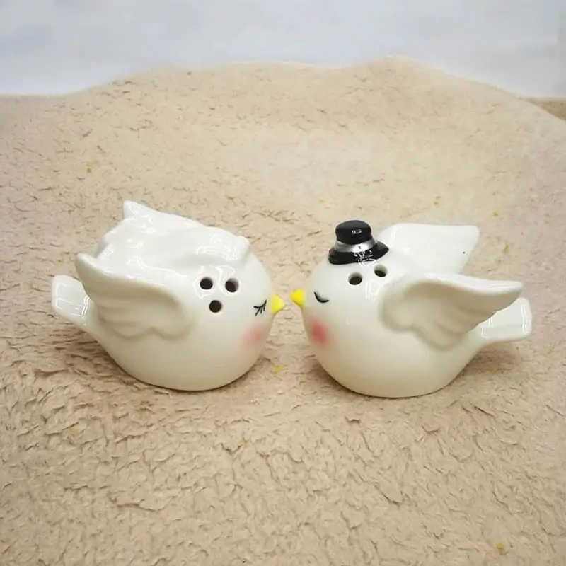 6.2*4*4.2CM dessin animé peint à la main ange oiseau Couple en céramique bouteille d'épices cadeau paire de maison cuisine fournitures poivre salière