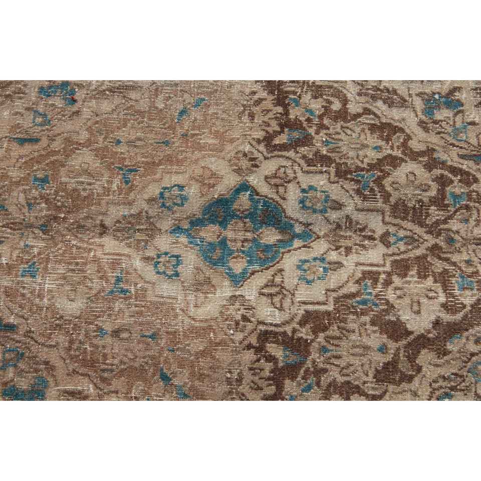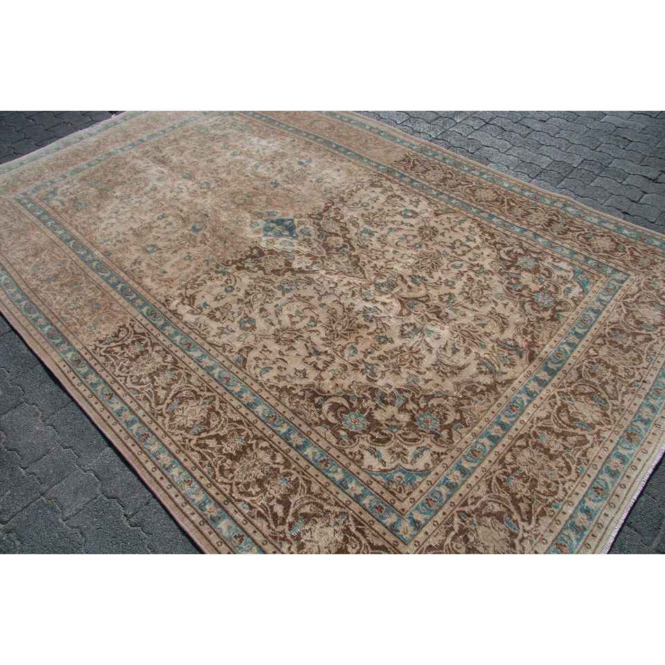 Tapis de 6,2 x 9,2 pieds, tapis turc vintage, tapis en laine à bordures brunes