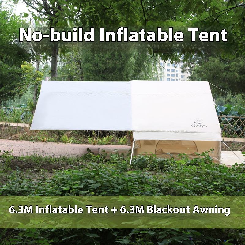Tente gonflable de camping en plein air 6.3 couleurs avec auvent, coupe-vent, résistante à l'eau, portable, adaptée à la nuit en famille