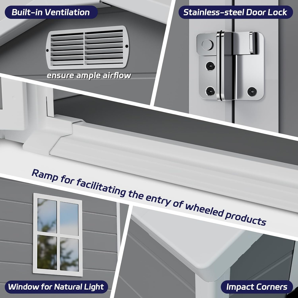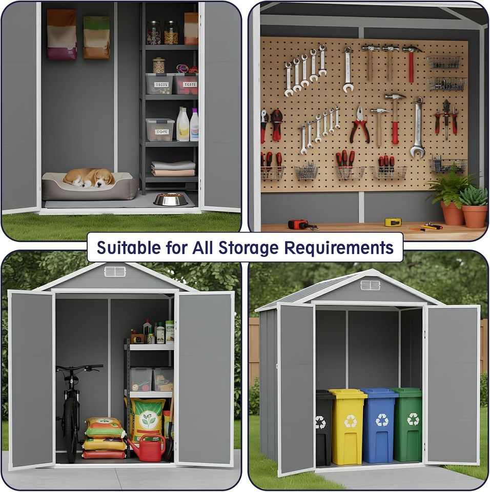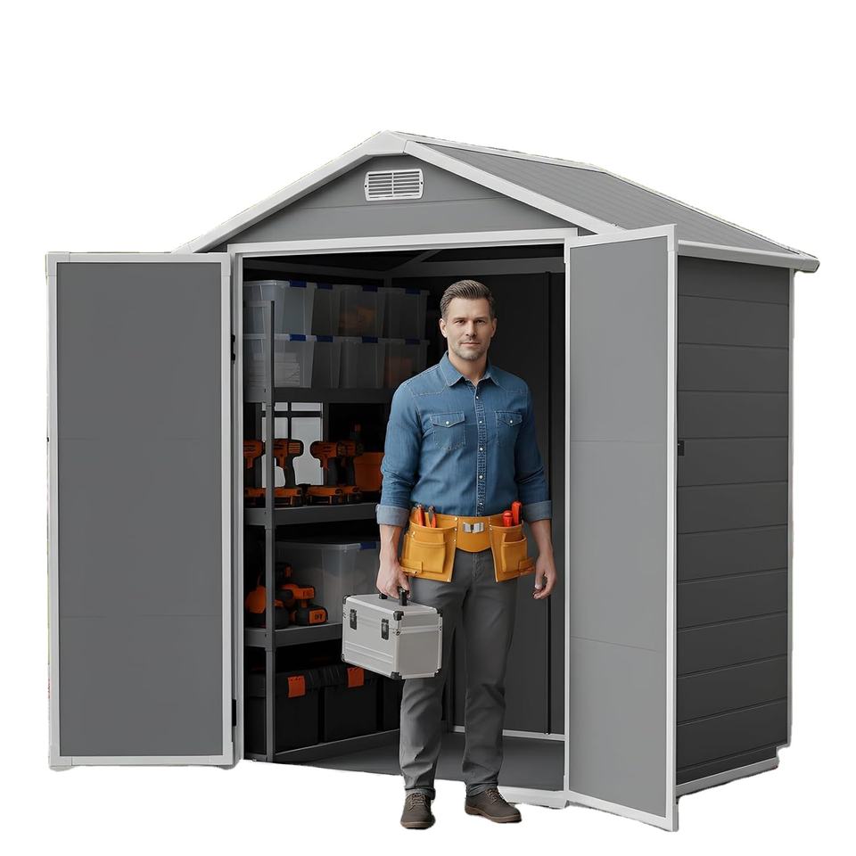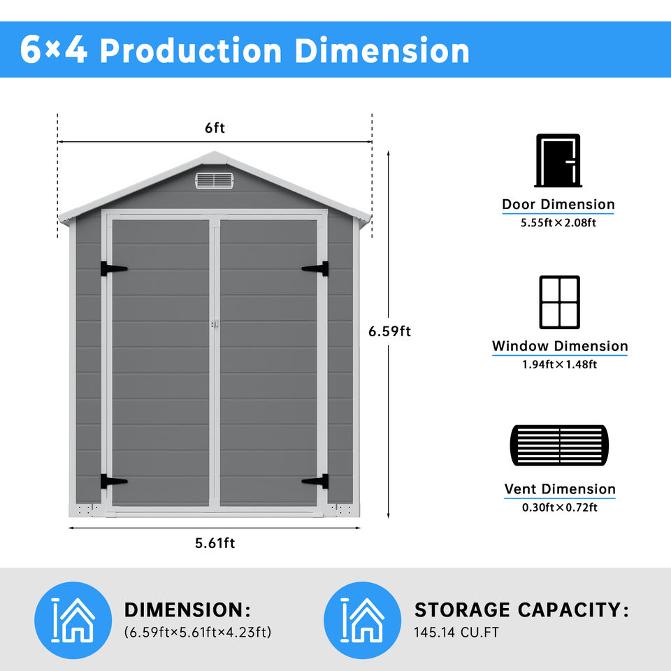 Abri de jardin extérieur étanche 6*4 pieds avec plancher, facile à assembler, portable pour la cour et le jardin