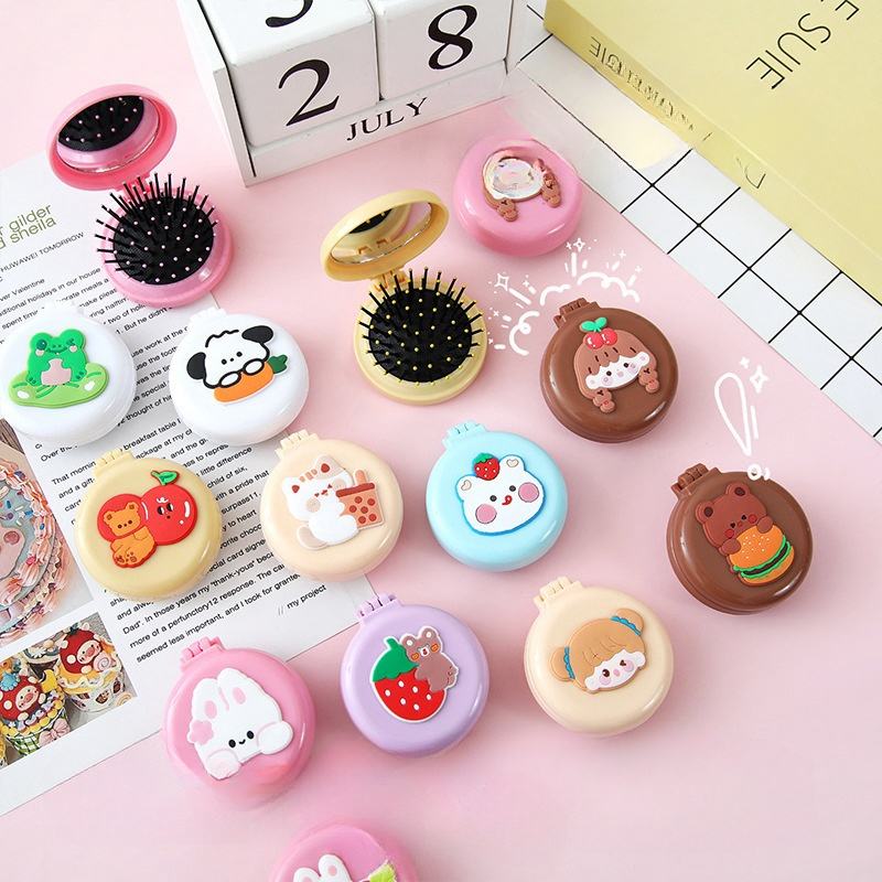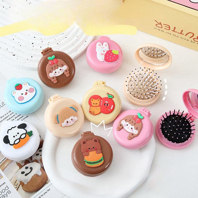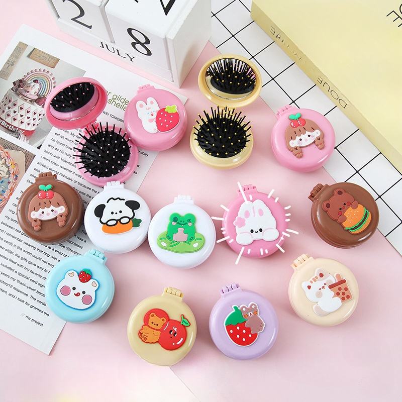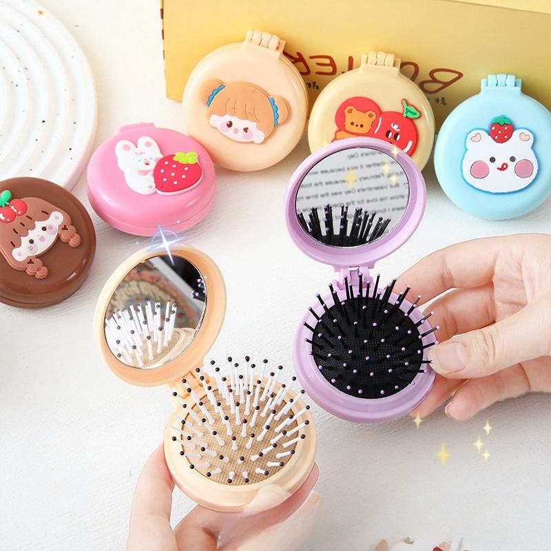 6.5CM mignon dessin animé fée pliable Airbag peigne intégré miroir cosmétique Mini Portable coussin d'air Massage peigne étiqueté