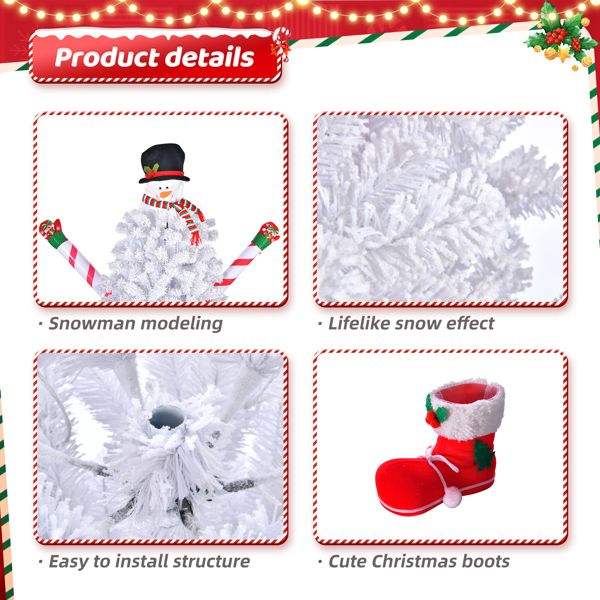 Sapin de Noël automatique en PVC de 6,5 pieds en forme de bonhomme de neige, 700 branches floquées blanches, 140 lumières de couleur fraîche, 8 modes d'éclairage pour une ambiance festive