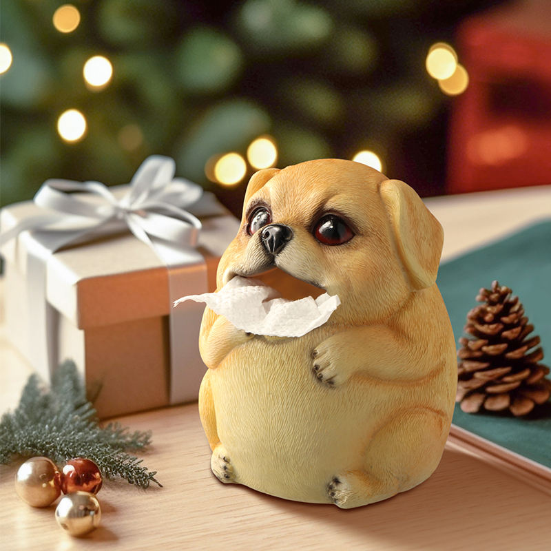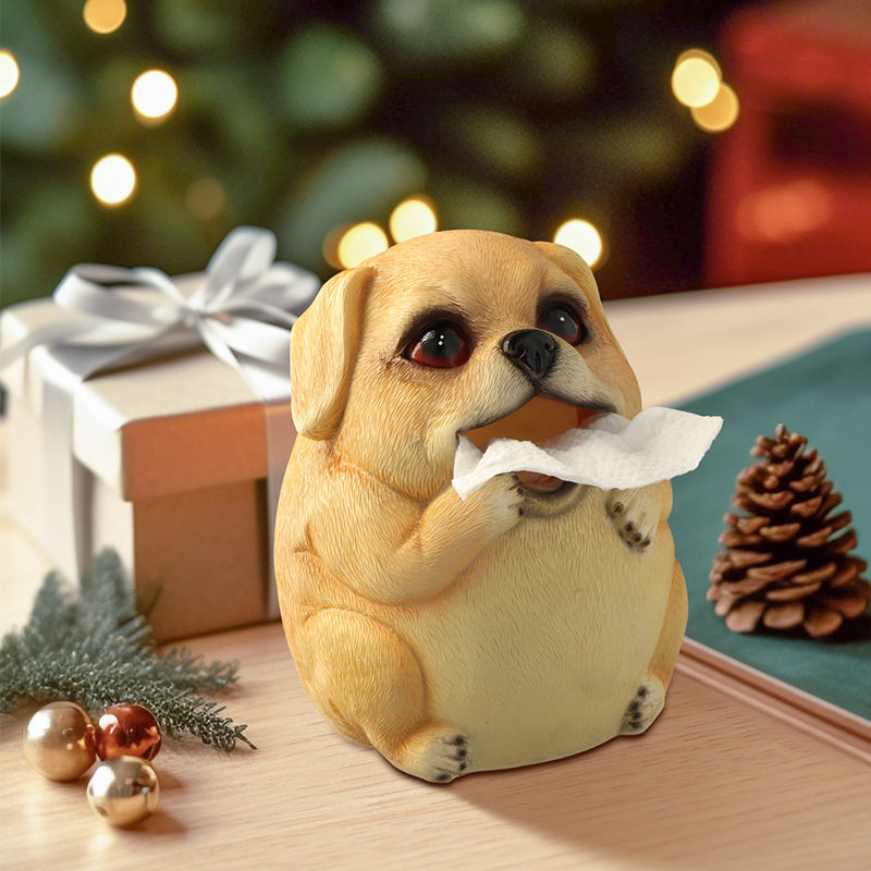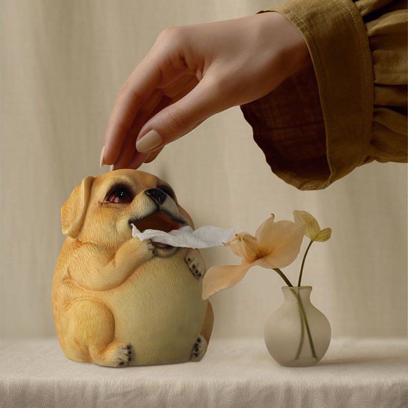 Sculpture artisanale en résine blanche de 6,6 pouces, joli ornement d'intérieur pour le salon, la cuisine, boîte à mouchoirs en forme de chien pour la décoration, LIFA LF3374
