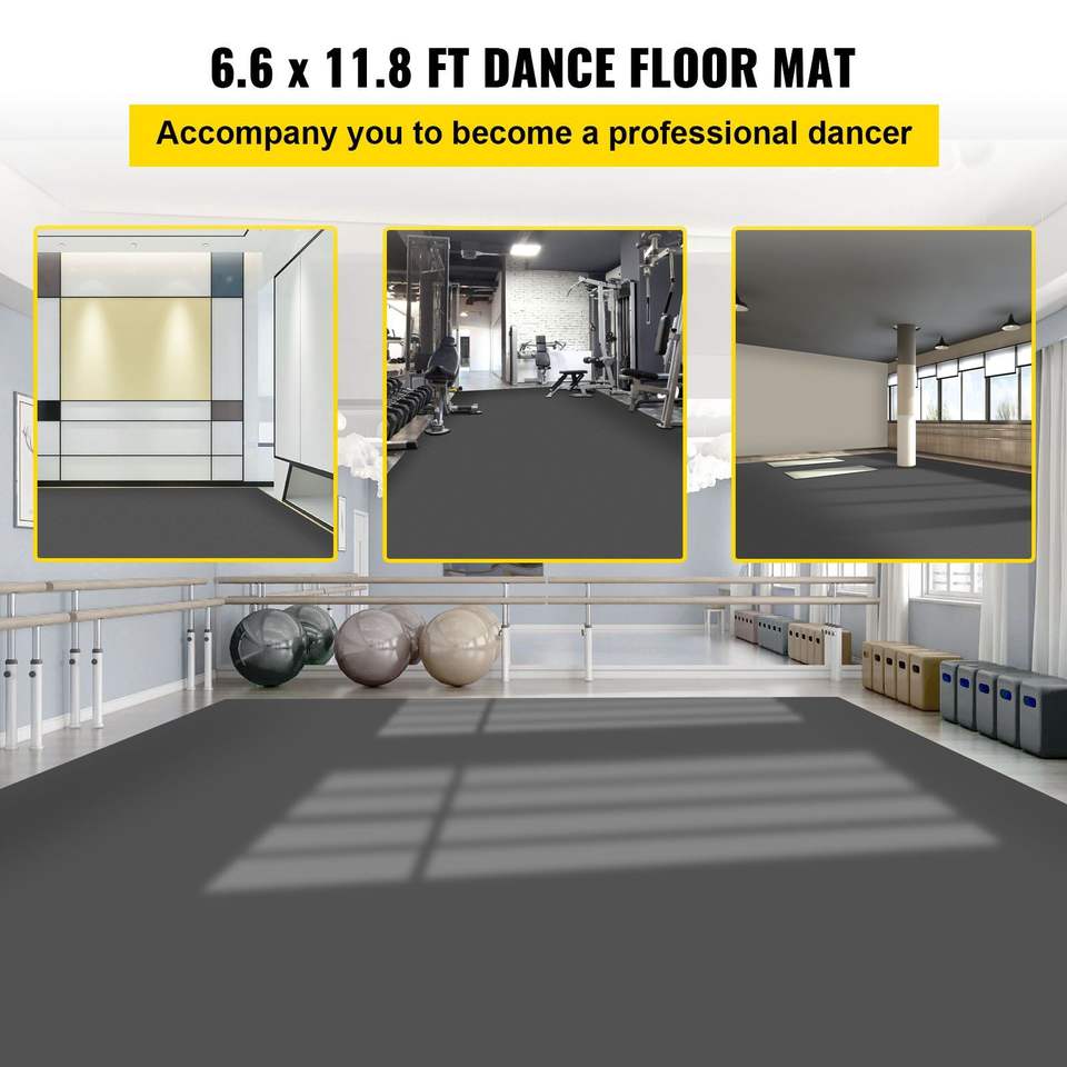 6.6x11.8ft antidérapant PVC vinyle piste de danse rouleau noir/gris réversible Portable Ballet Jazz gymnastique tapis modèle D0100HADJY7