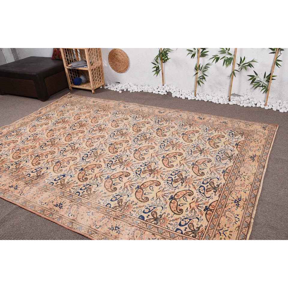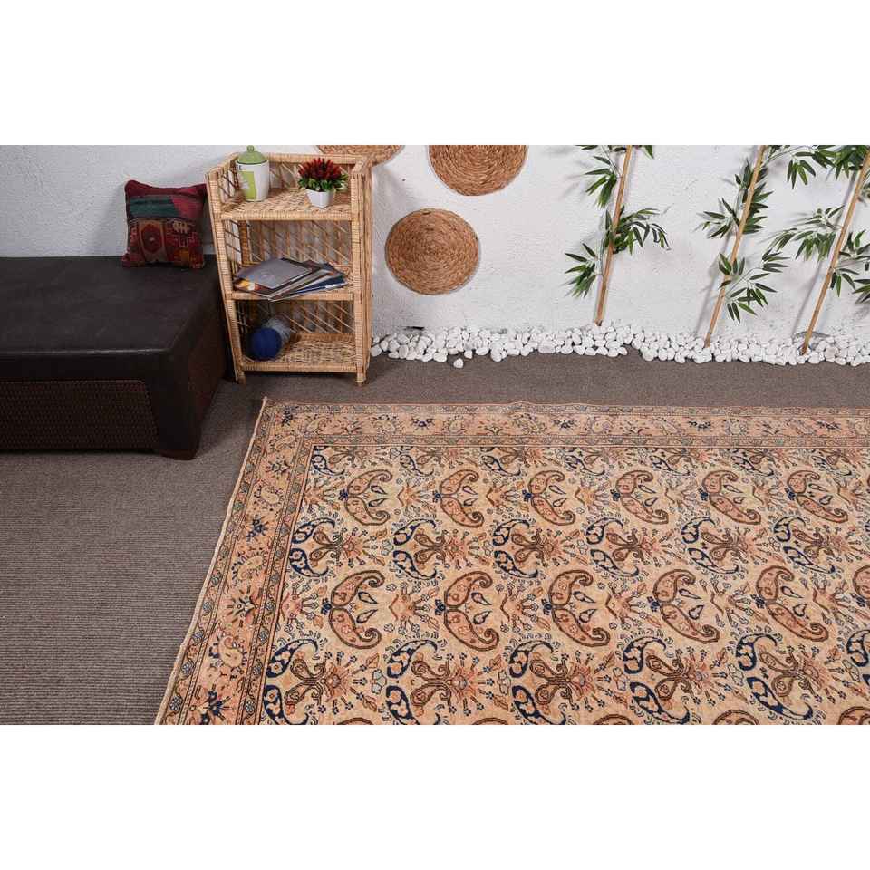 Tapis vintage 6,6x9,4 pieds, grand tapis turc, tapis abstrait beige