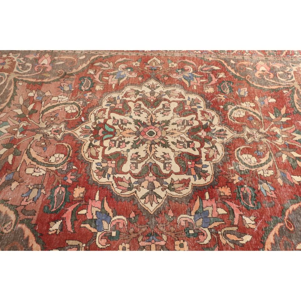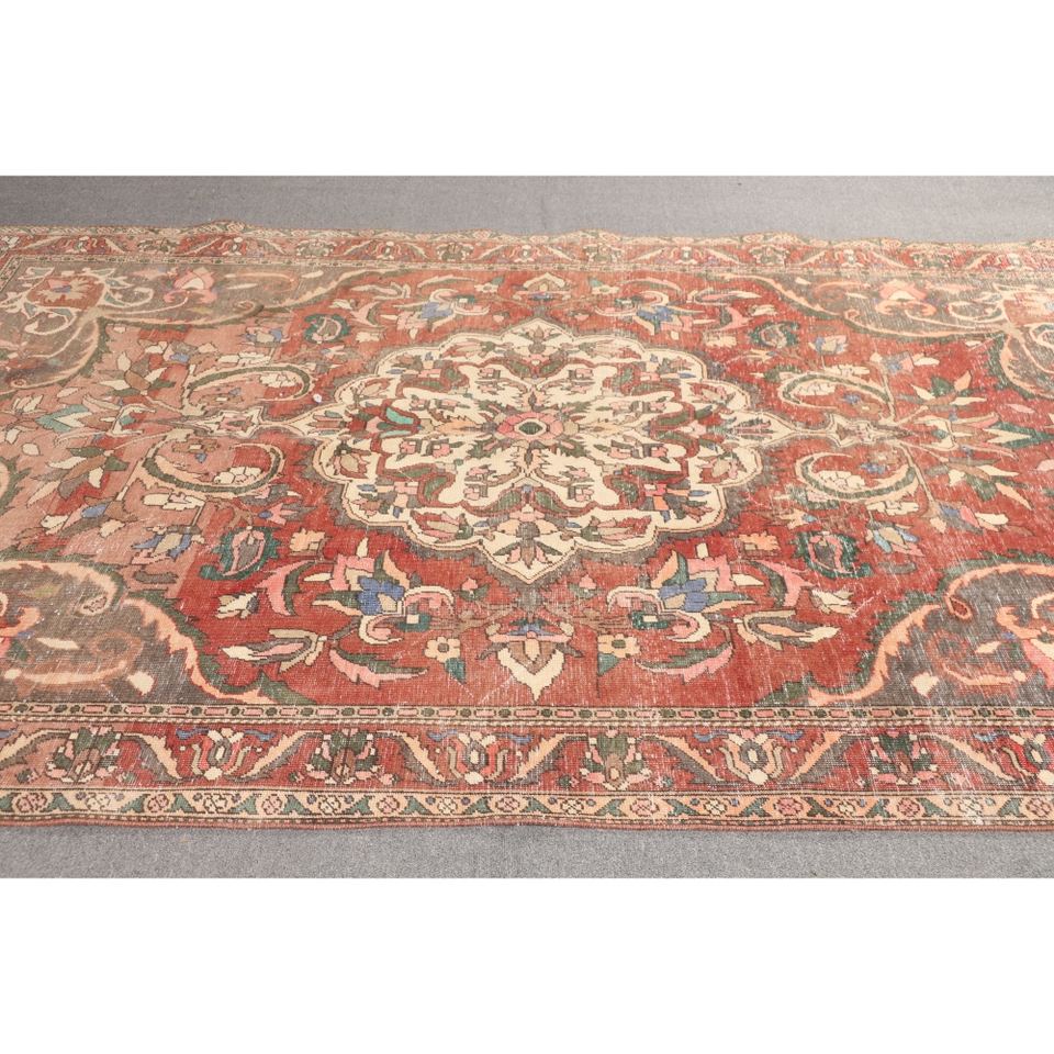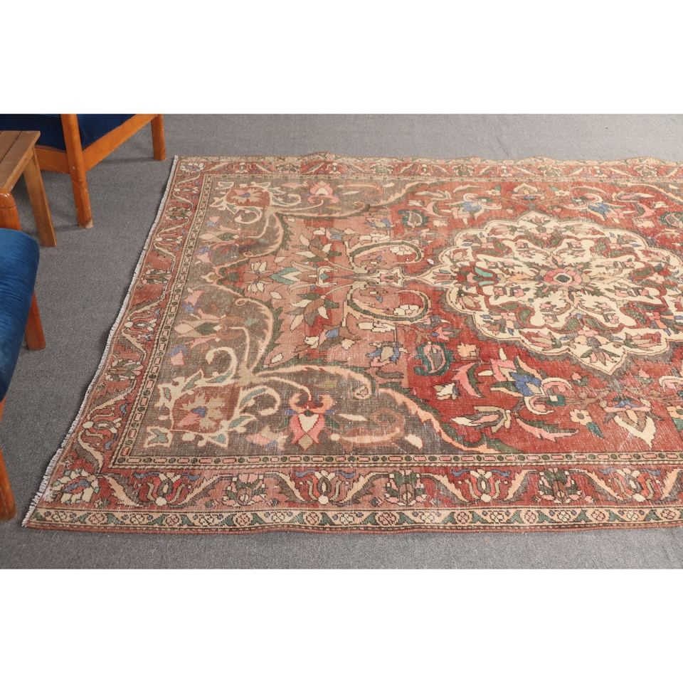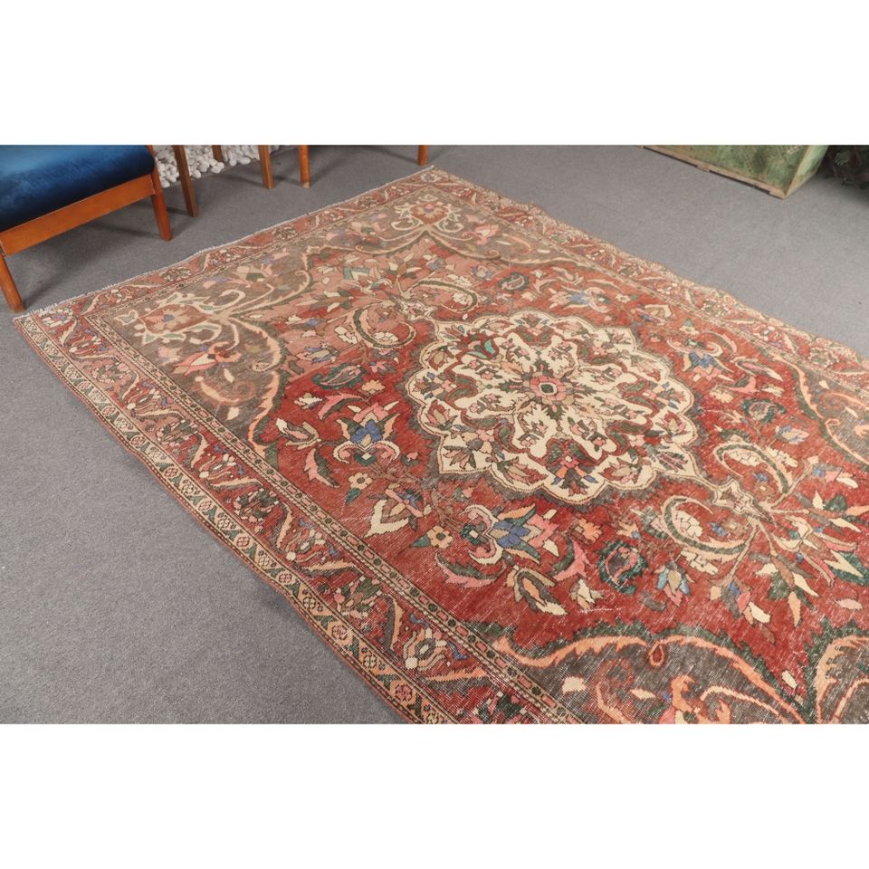 Grand tapis turc de 6,6 x 9,7 pieds, rouge vintage à motifs géométriques et éléments floraux