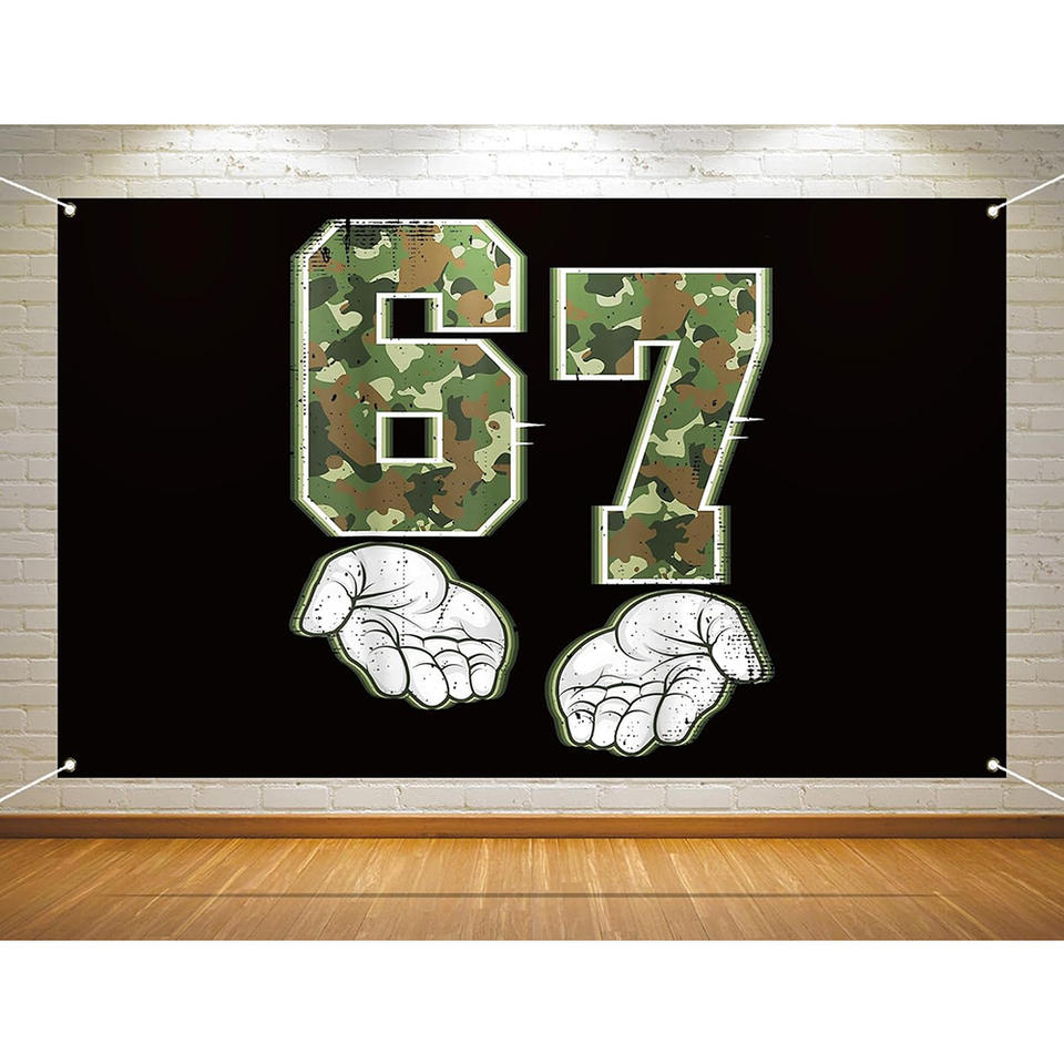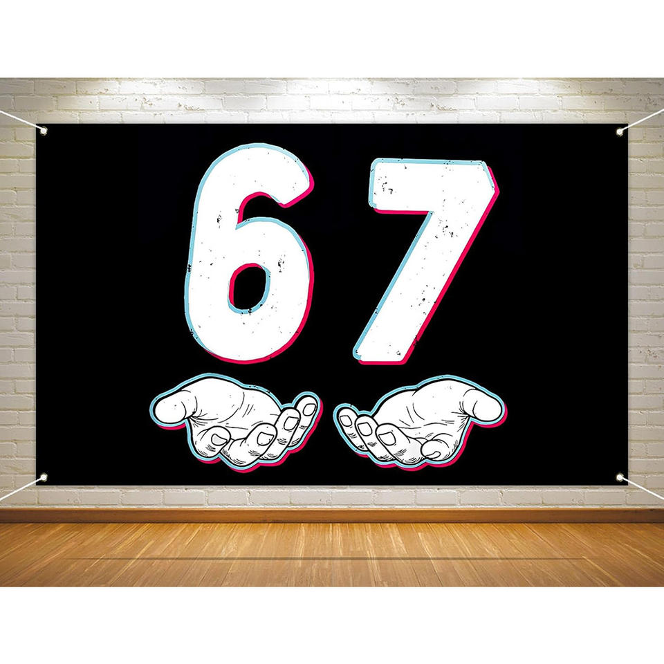 Toile de fond personnalisable pour anniversaire sur le thème des Mèmes 6 7, avec décorations amusantes de beignets et glaces, bannière de fête
