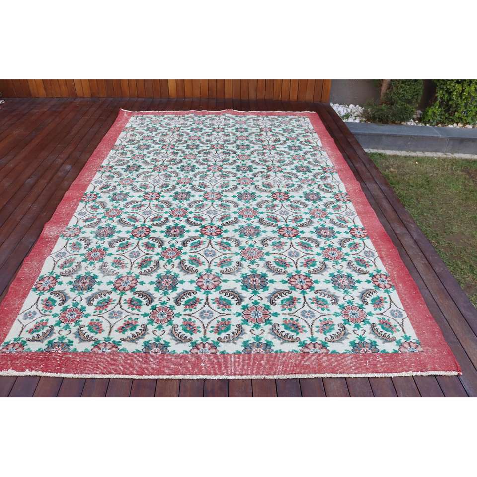 Tapis turc 6,7 x 10,6 pieds, tapis vintage surdimensionné, tapis en laine abstrait rouge