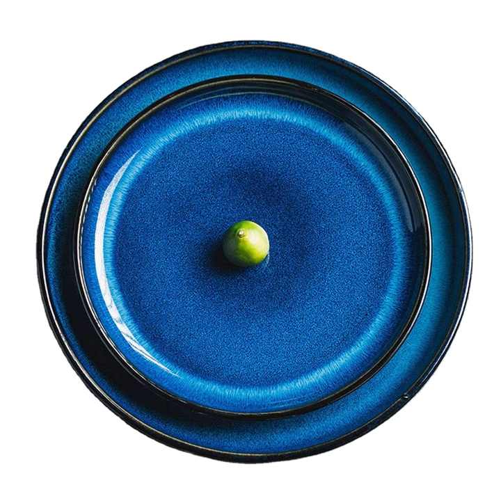 Assiettes de luxe en porcelaine bleue réactive de style japonais, sans BPA, écologiques, de haute qualité, pour sushi, steak et salade, disponibles en 6, 8, 10 et 12 pouces