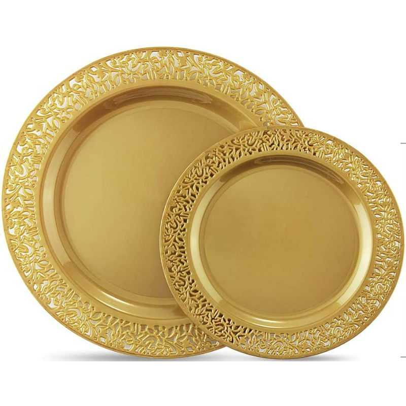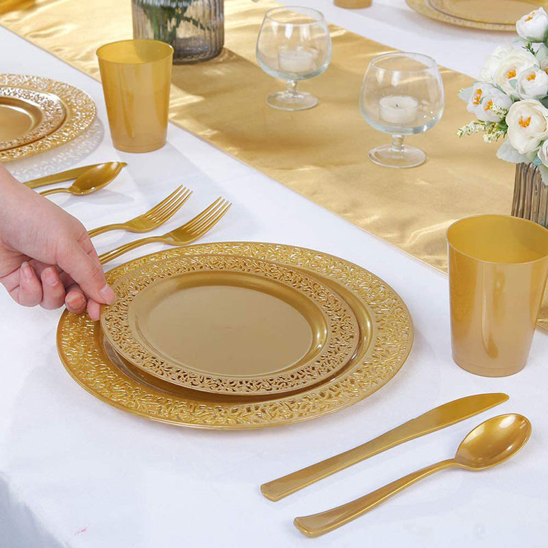 Ensemble de vaisselle jetable pour fête de 6 à 9 pièces, plaque creuse dorée brune, plateau à gâteau, plateau occidental
