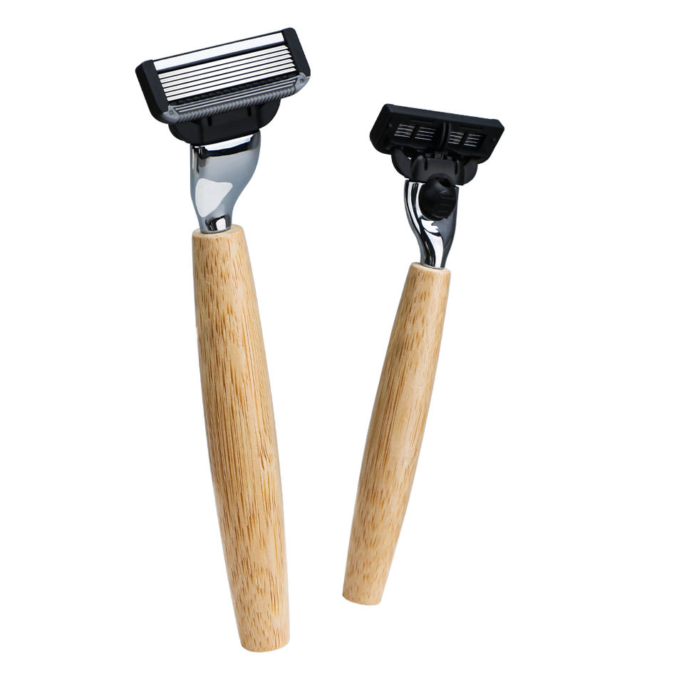 Rasoir à 6 lames avec manche en bambou à dos ouvert, écologique, de haute qualité, rasoir à six lames durable, cadeau pour homme