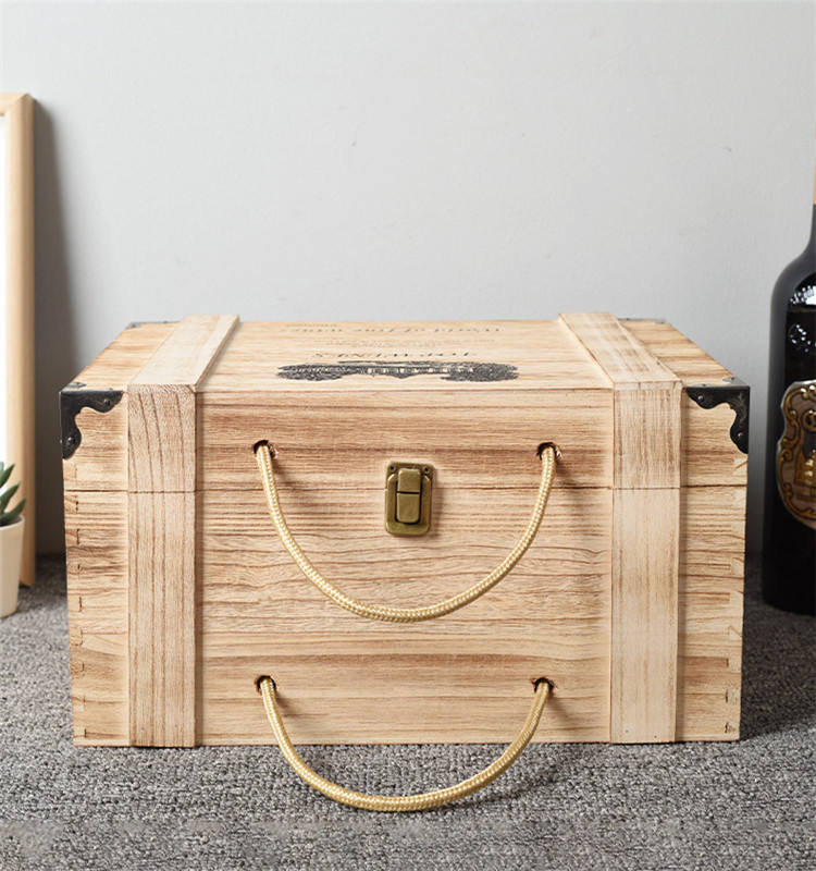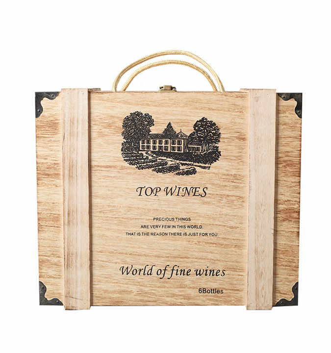 Boîte à vin portable en bois peint réutilisable pour 6 bouteilles avec poignée en corde, boîte de transport et d'exposition