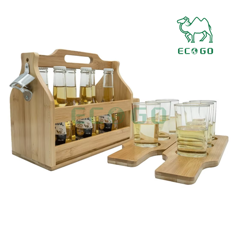 Porte-bouteille en bois pour 6 bouteilles de vin Panier à bière en bambou Porte-bouteille en bois avec ouvre-bouteille pour bar
