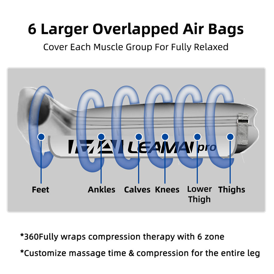 Bottes de récupération à compression d'air rechargeables à 6 chambres, système de massage des pieds et des jambes, appareil de thérapie