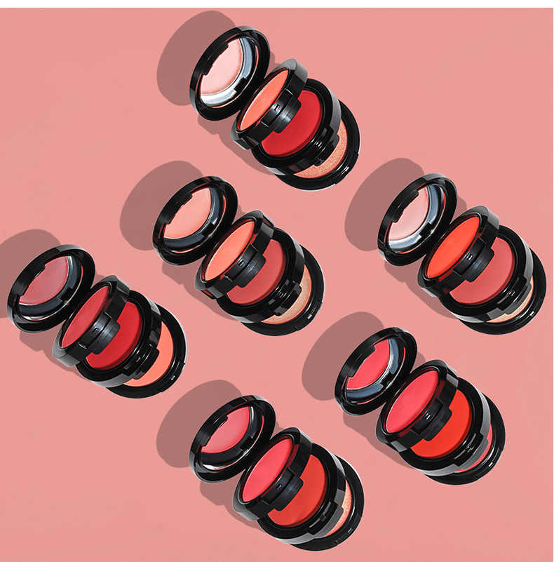 Teinte de visage crémeuse 6 couleurs Facial Blush Face Rouge Cheese Tint 2 moules crémeux et une poudre Custom Your Logo 3-1 highlight Blush